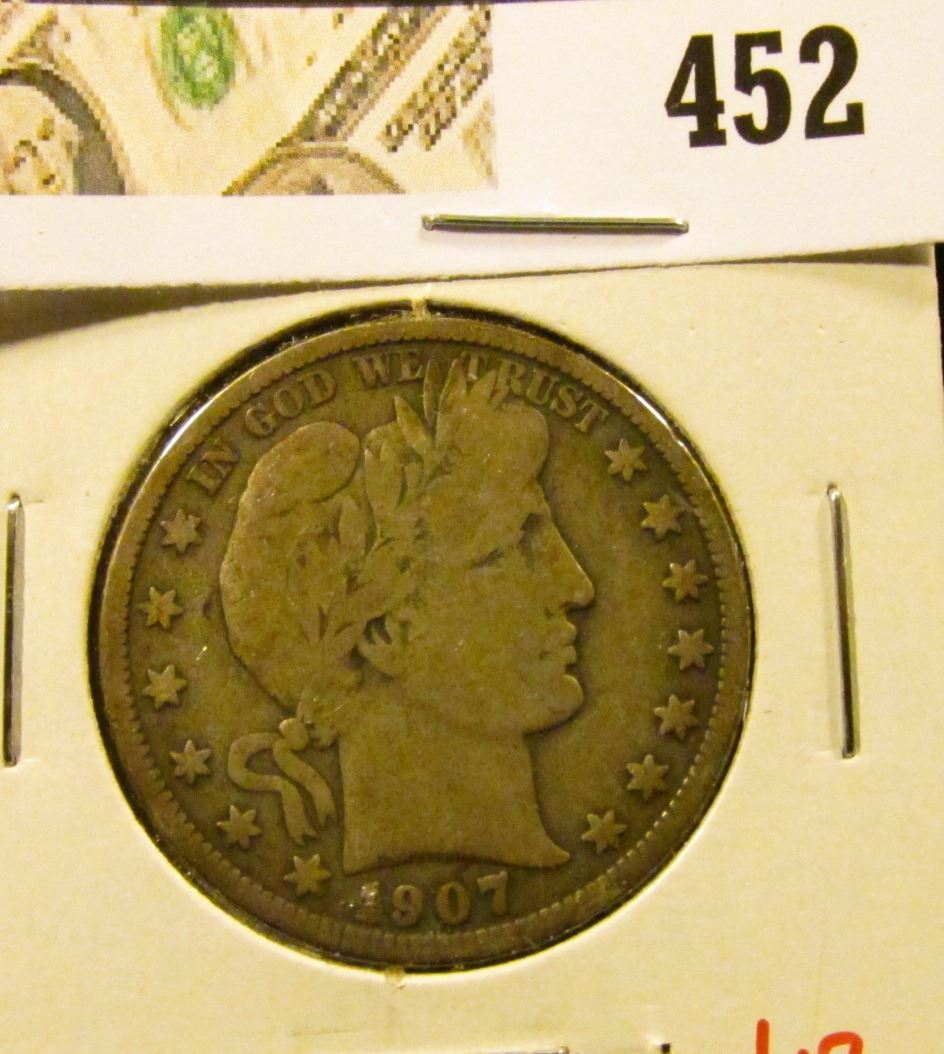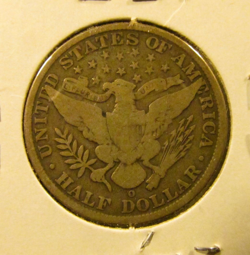 1907-O Barber Half Dollar, VG, value $17
