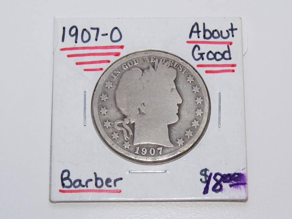 (1) 1907-O About Good Barber Silver Half Dollar 1907 O Half Dollar Barber