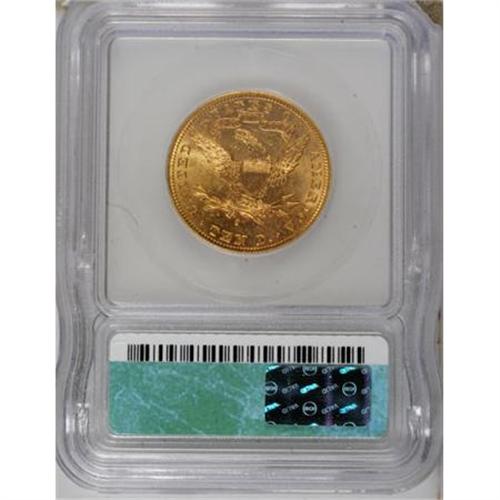 <B>1907-S $10 MS62 ICG.</B></I> NGC Census: (36/14). PCGS Population (29/24). Mintage: 210,500. Numismedia Wsl. Price for NGC/PCGS coin in MS62: $900. (#8765)<BR><BR><B>Coin Engraver:</B> Christian Gobrecht<BR><BR><b>Shipping:</b> Coins & Currency (<a target="_blank" href="http://www.heritageauctions.com/common/shipping.php">view shipping information</a>\)