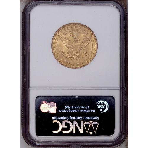 <B>1907-S<$10> MS62 NGC.</B></I> A lustrous example of this challenging final-year issue. The centers are somewhat soft, but the remainder of the designs are crisply impressed, and the only noticeable mark rests between the upper two arrow heads. Census: 36 in 62, 9 finer (3/06). <BR><BR><B>Important notice:</B> Heritage usually auctions material at the rate of 200-250 lots per hour. On some occasions eBay Live bid software or the Internet may not be able to keep up with the pace of the auction. We recommend placing a realistic absentee bid now as insurance to avoid disappointment. Occasionally the auctioneer may eliminate or reject an eBay Live bid, and the auctioneer may also reopen a lot after the close of the eBay live bidding (usually because we missed an audience bid), and may reject your bid even if it shows you as the winning bidder. By bidding via eBay Live, you agree that Heritage may award the lot to another bidder at its sole discretion under the circumstances described above or any other reasonable circumstances. Since eBay bids are not shown to us until we open the lot on the floor, we treat those bids just like floor bids. In most cases the floor responds before the eBay bid is presented to us, due to Internet lag time, so for consistency we have made it a policy that floor bids are always considered first over tie eBay live bids. Also please note that all Heritage lots purchased through eBay Live carry a 20% Buyer's Premium. Please make sure you read the Terms and Conditions before you bid. This lot is being auctioned in conjunction with a live floor auction by Heritage Galleries & Auctioneers. All final auction and invoice information will be supplied by Heritage Galleries & Auctioneers, and all other information should be considered preliminary. Lot:4084 <BR><BR><B>Winning Notification and Billing:</B> After the FINAL session in this auction is complete, Heritage will send e-mail and snail mail invoices. This process normally takes several days. All final auction and invoice information will be supplied by Heritage Galleries & Auctioneers, and all other information should be considered preliminary. <BR><BR>This auction will be conducted on a live auction floor and over the Internet through eBay Live. If you choose to place an absentee bid, please take a moment to <font color='#0000ff'><u><a href='http://pages.ebay.com/liveauctions/help/before/laabsentee.html'>learn how eBay Live absentee bidding works</a></u></font><font color='#000000'>