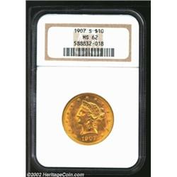 1907-S $10 MS62 NGC. A scarce S-mint Eagle and the final year of issue for this design. The surfaces