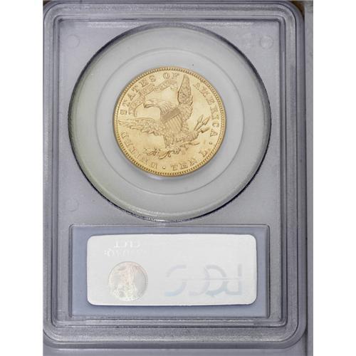 <B>1907-S<$10> MS62 PCGS.</B></I> Well struck, lustrous, and clean overall, but limited by marks near the jaw, beneath the bun, and near the arrowheads. A better date that is perhaps two hundred times scarcer in Mint State than its 1907 Philadelphia counterpart. Population: 27 in 62, 19 finer (3/06). <BR><BR><B>Important notice:</B> Heritage usually auctions material at the rate of 200-250 lots per hour. On some occasions eBay Live bid software or the Internet may not be able to keep up with the pace of the auction. We recommend placing a realistic absentee bid now as insurance to avoid disappointment. Occasionally the auctioneer may eliminate or reject an eBay Live bid, and the auctioneer may also reopen a lot after the close of the eBay live bidding (usually because we missed an audience bid), and may reject your bid even if it shows you as the winning bidder. By bidding via eBay Live, you agree that Heritage may award the lot to another bidder at its sole discretion under the circumstances described above or any other reasonable circumstances. Since eBay bids are not shown to us until we open the lot on the floor, we treat those bids just like floor bids. In most cases the floor responds before the eBay bid is presented to us, due to Internet lag time, so for consistency we have made it a policy that floor bids are always considered first over tie eBay live bids. Also please note that all Heritage lots purchased through eBay Live carry a 20% Buyer's Premium. Please make sure you read the Terms and Conditions before you bid. This lot is being auctioned in conjunction with a live floor auction by Heritage Galleries & Auctioneers. All final auction and invoice information will be supplied by Heritage Galleries & Auctioneers, and all other information should be considered preliminary. Lot:4085 <BR><BR><B>Winning Notification and Billing:</B> After the FINAL session in this auction is complete, Heritage will send e-mail and snail mail invoices. This process normally takes several days. All final auction and invoice information will be supplied by Heritage Galleries & Auctioneers, and all other information should be considered preliminary. <BR><BR>This auction will be conducted on a live auction floor and over the Internet through eBay Live. If you choose to place an absentee bid, please take a moment to <font color='#0000ff'><u><a href='http://pages.ebay.com/liveauctions/help/before/laabsentee.html'>learn how eBay Live absentee bidding works</a></u></font><font color='#000000'>