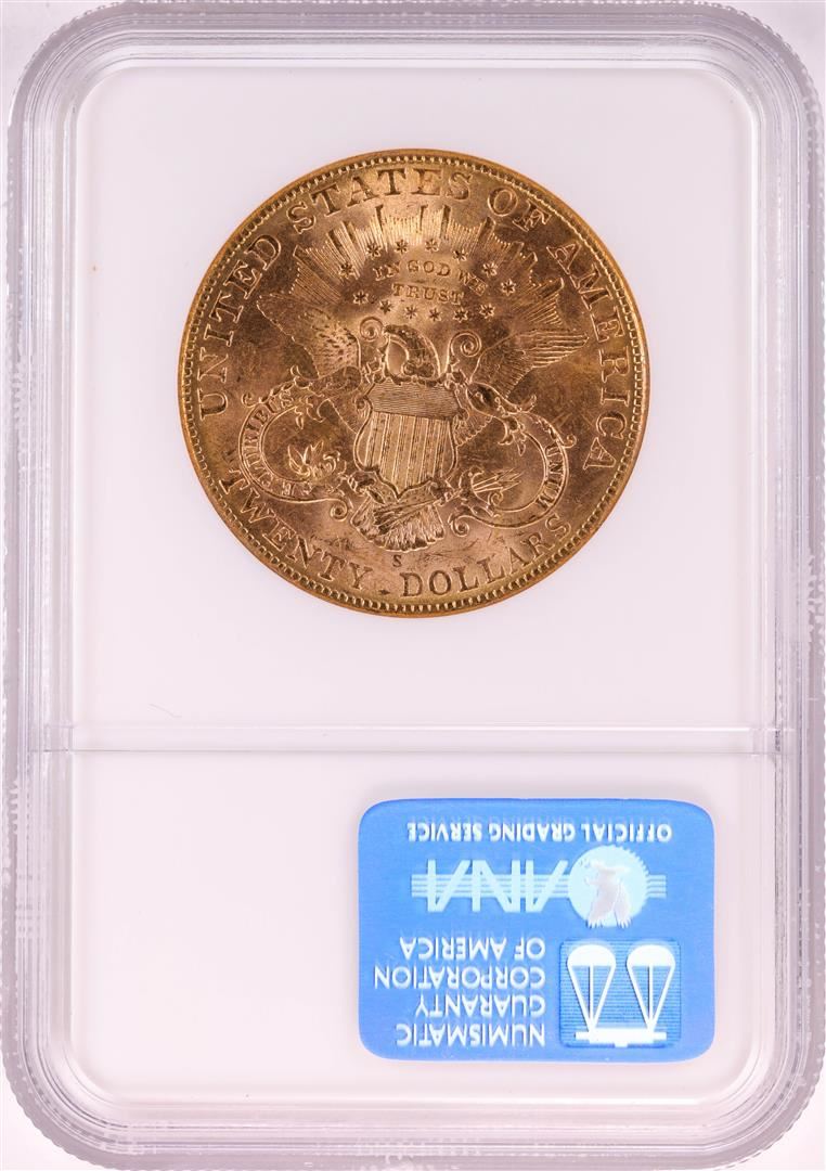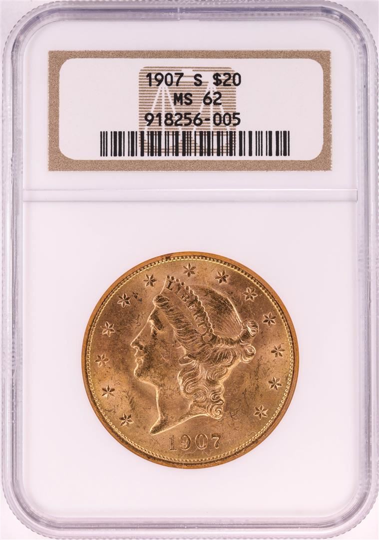 One 1907-S $20 Liberty Head Double Eagle Gold Coin NGC MS62. NGC Certified.