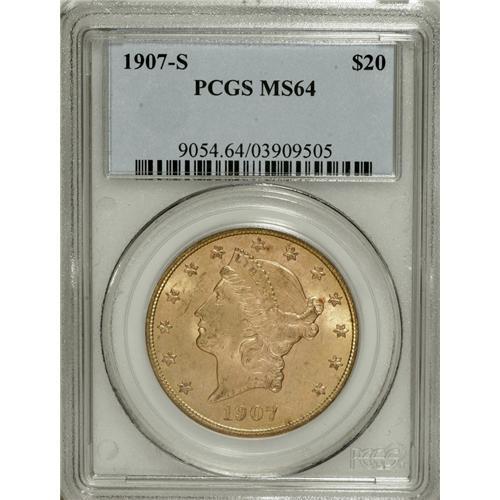 1907-S $20 MS64 PCGS. A popular type coin, as the last