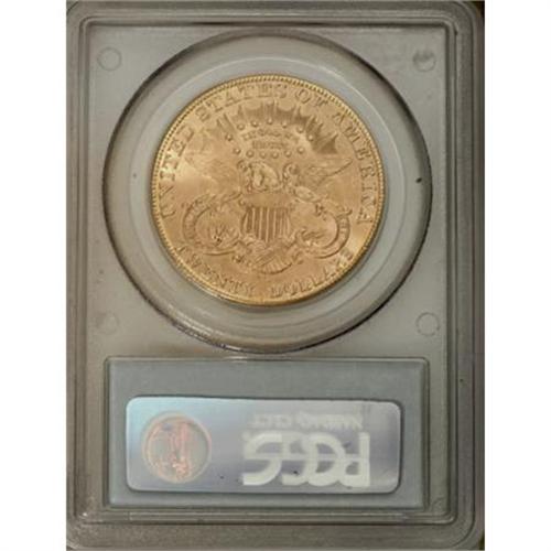 <B>1907-S $20 MS64 PCGS.</B></I> Brilliant and fully lustrous yellow-gold with frosty surfaces that are accented by hints of pink toning. This is an excellent piece to represent the conditionally rare 1907-S issue. PCGS has only certified two Gem quality pieces on over 20 years of numismatic certification.<BR><BR><B>Coin Engraver:</B> James B. Longacre<BR><BR><b>Shipping:</b> Coins & Currency (<a target="_blank" href="http://www.heritageauctions.com/common/shipping.php">view shipping information</a>)