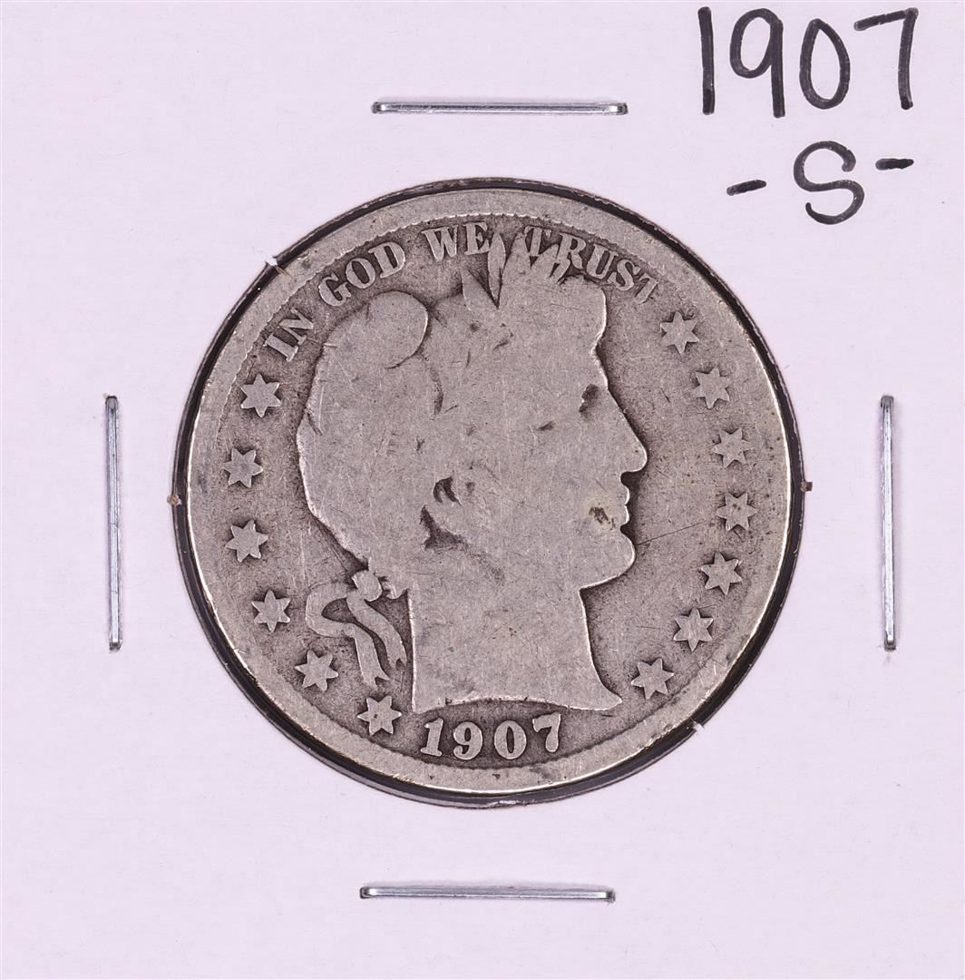 One 1907-S Barber Half Dollar Coin.
