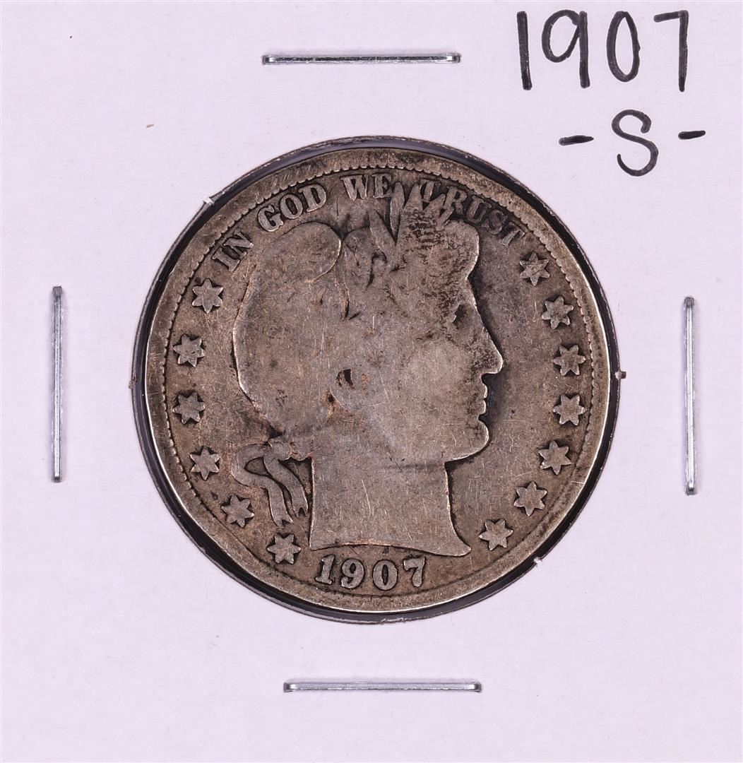 One 1907-S Barber Half Dollar Coin.