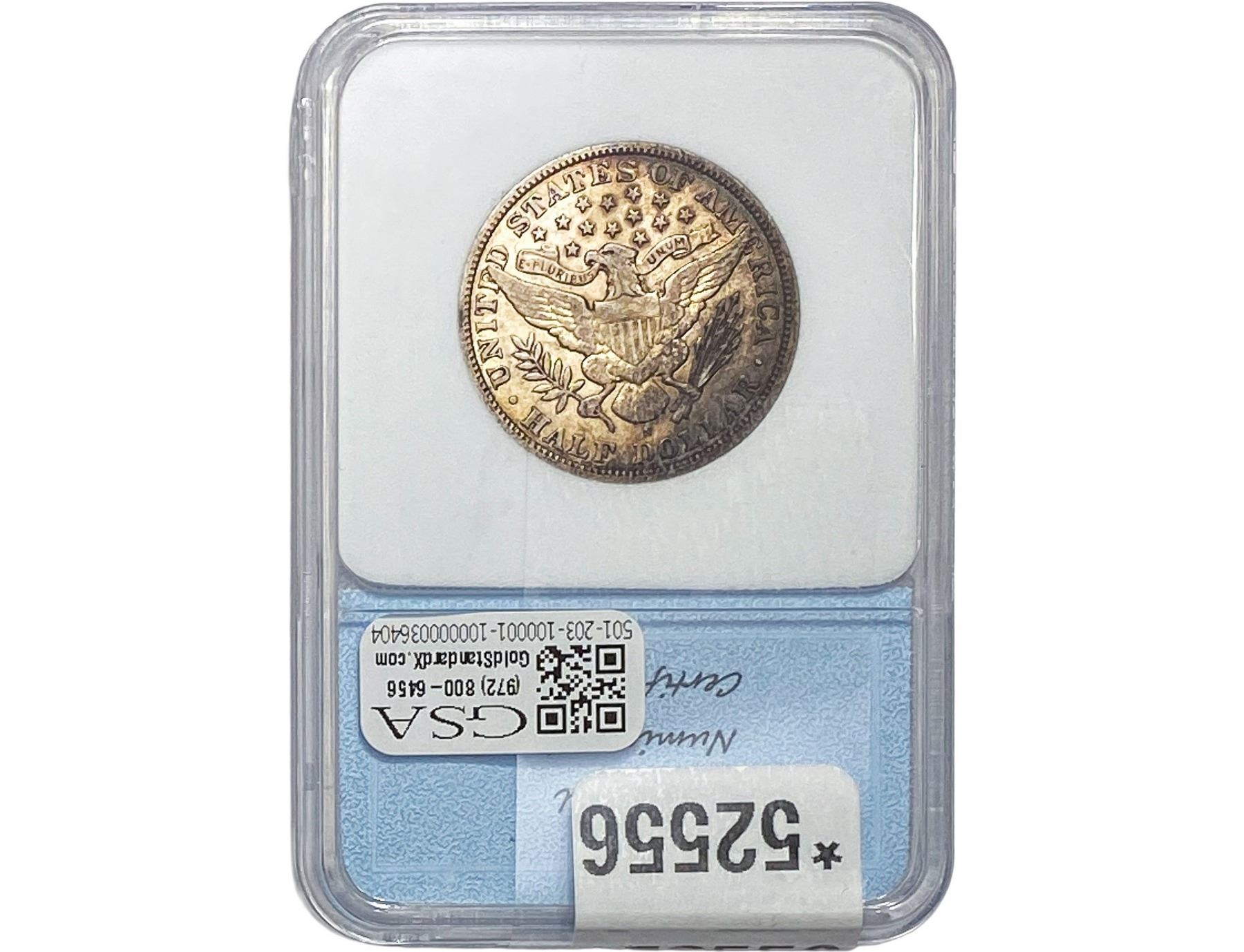 l. All non-certified coins and currency are guaranteed genuine, but are not guaranteed as to grade, since grading is a matter of opinion, an art and not a science, and therefore the description rendered by GSA or any third-party grading service may not agree with the opinion of others (including trained experts), and the same expert may not grade the same item with the same grade at two different times. GSA may, but is not obligated to, express an opinion as to non-certified numismatic items, in GSA’s opinion, or by its employees’ experience and the current interpretation of the American Numismatic Association’s standards as of the date the catalog was prepared. There is no guarantee or warranty expressed or implied that the grading opinions utilized by GSA, if any, will meet the standards of any grading service at any time in the future.