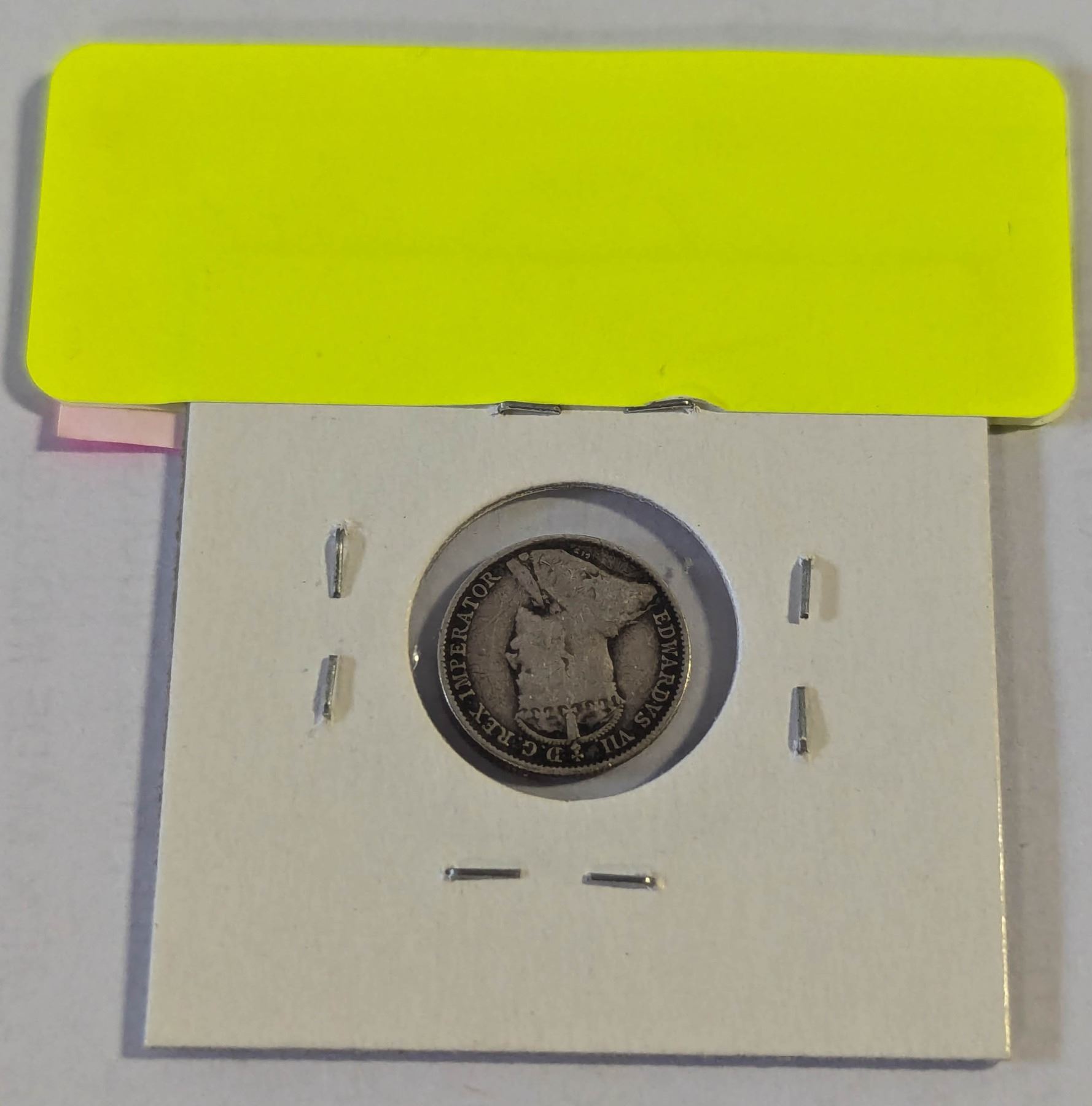 1907 SILVER CANADA 5 CENTS FISHSCALE COIN