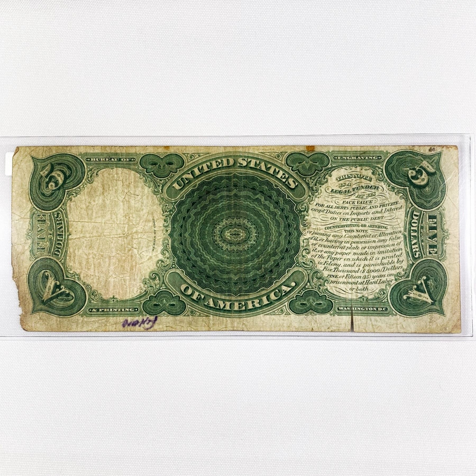 1907 Series LG $5 Wood Chopper Legal Tender