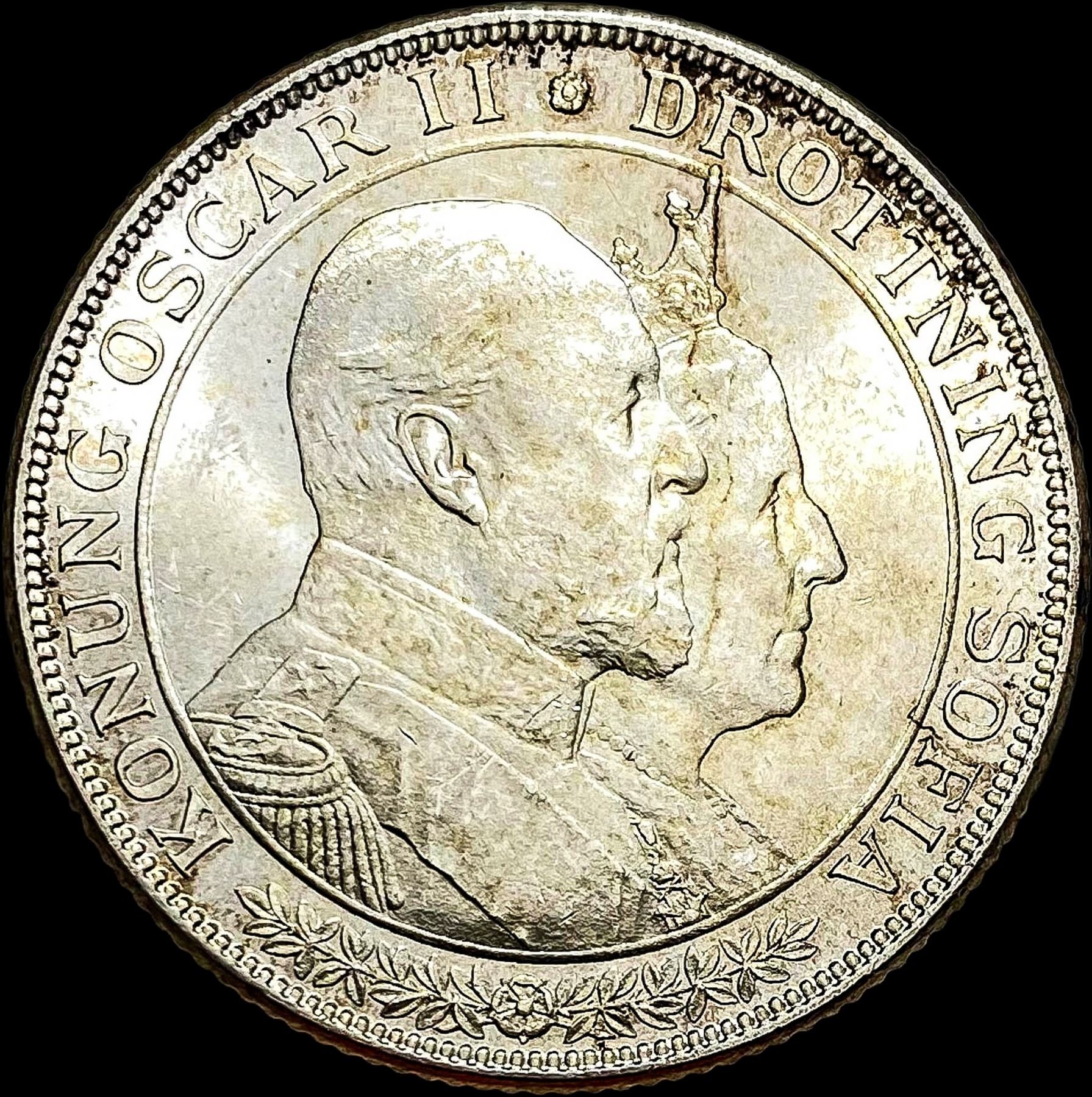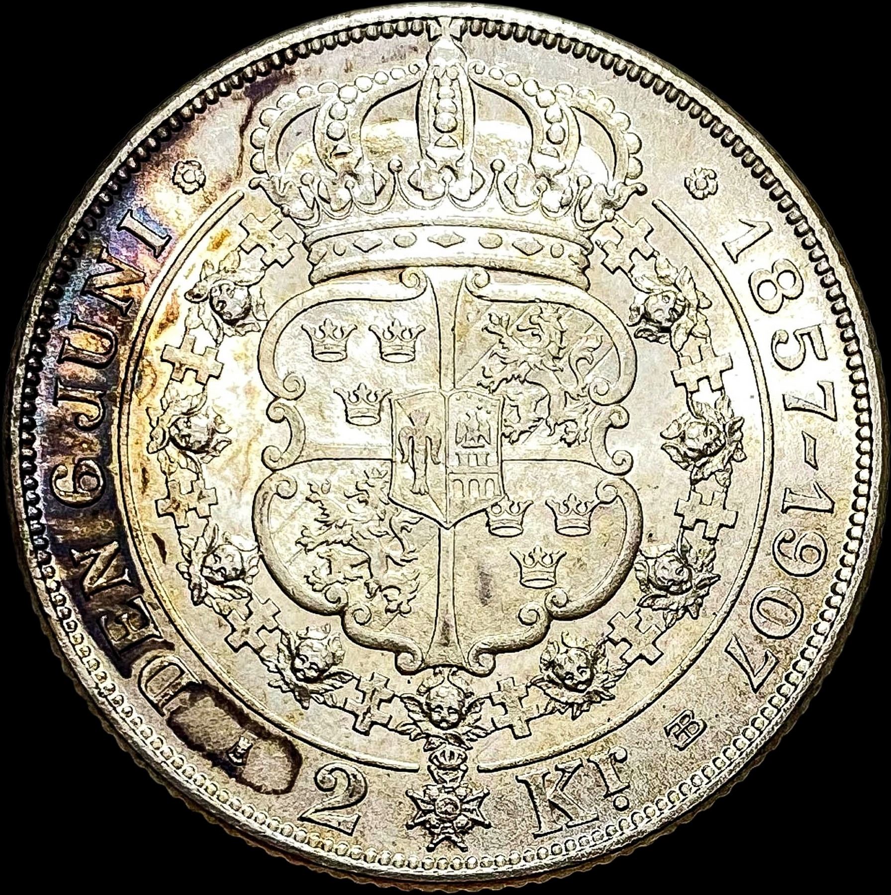 1907 Sweden Silver 2 Kronor Oscar II UNCIRCULATED