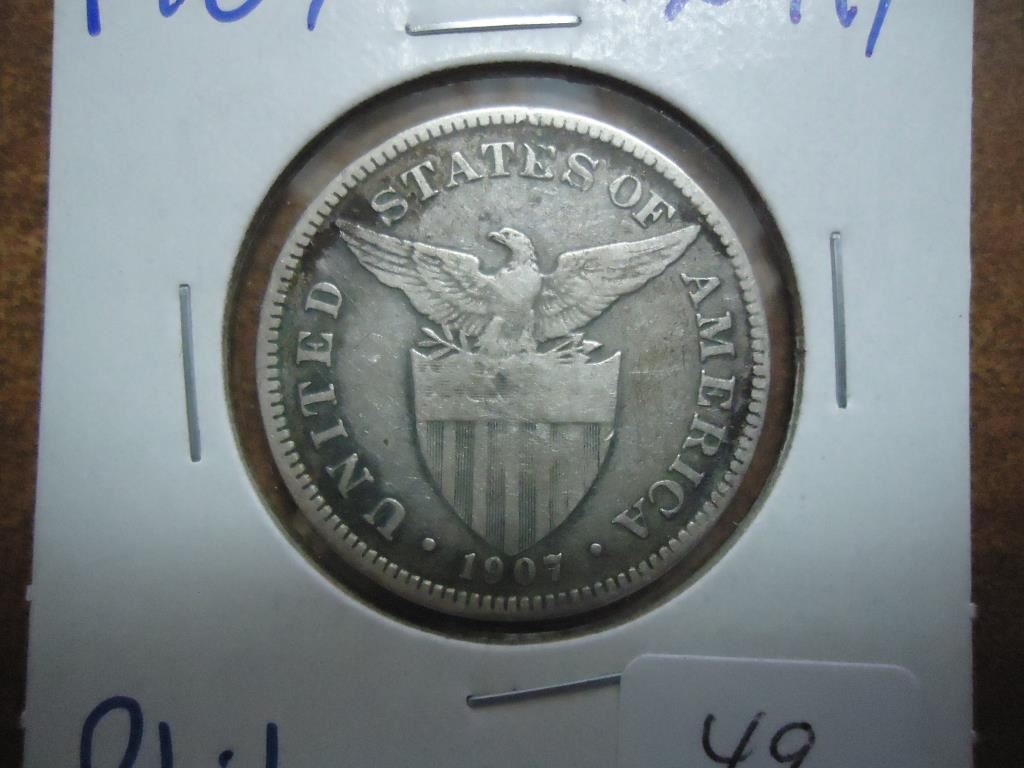 1907 US PHILIPINNES SILVER 50 CENTAVOS .2411 ASW