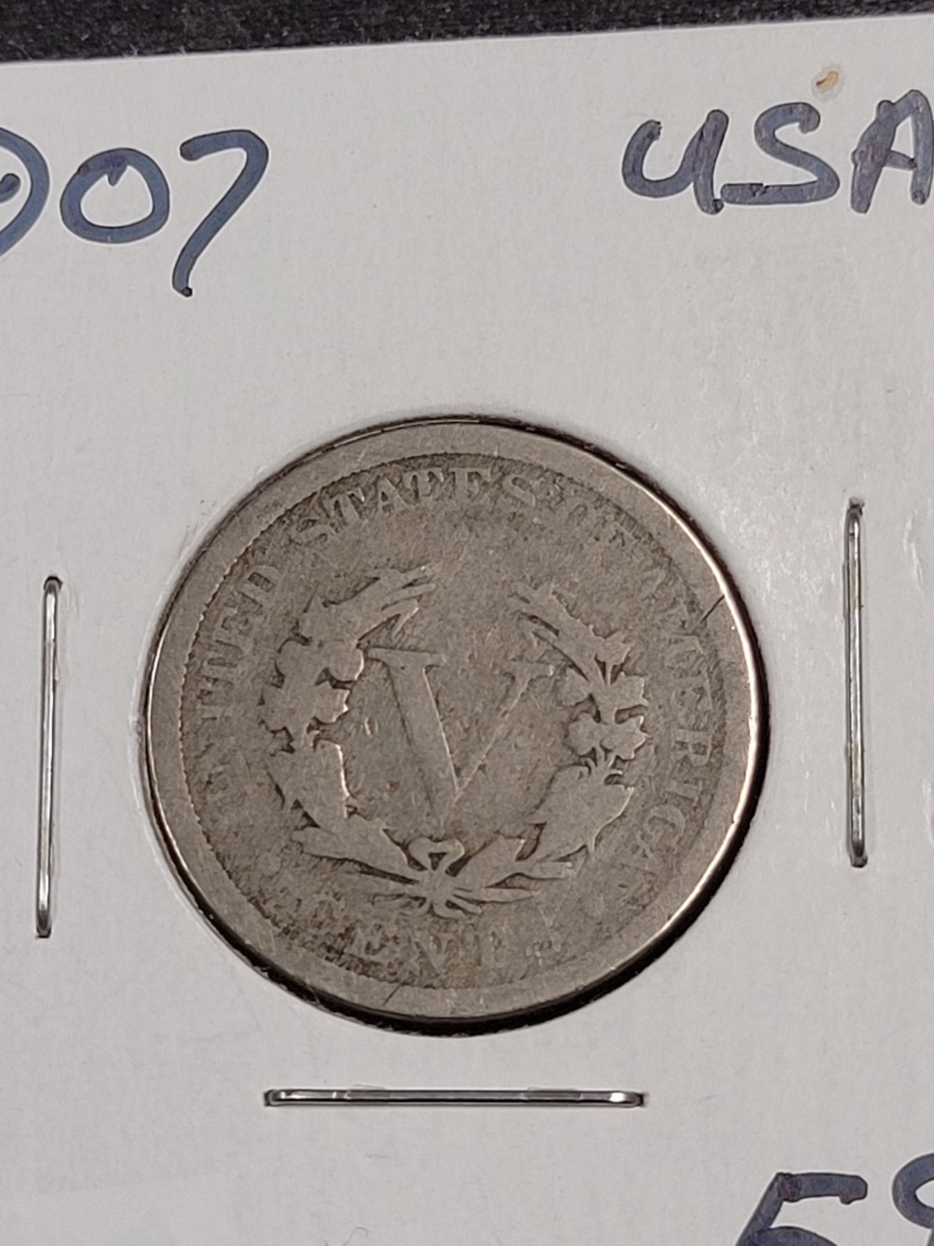 1907 Usa IIberty Head Nickel (5 Cent) Coin VG-8