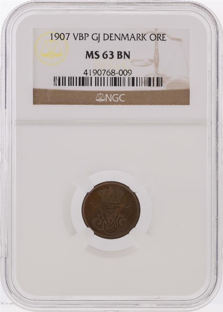 One 1907 VBP GJ Denmark ORE Coin NGC Graded MS63 BN. NGC Certified.