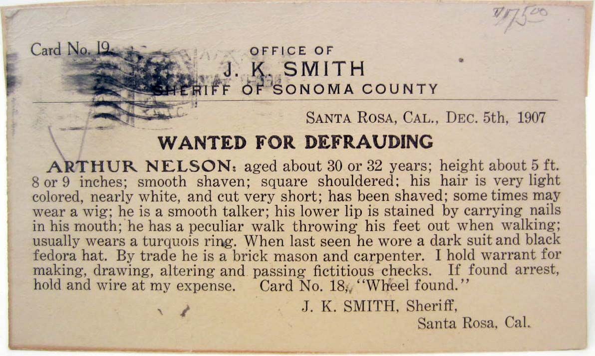 wanted for defrauding. From Santa Rosa CA