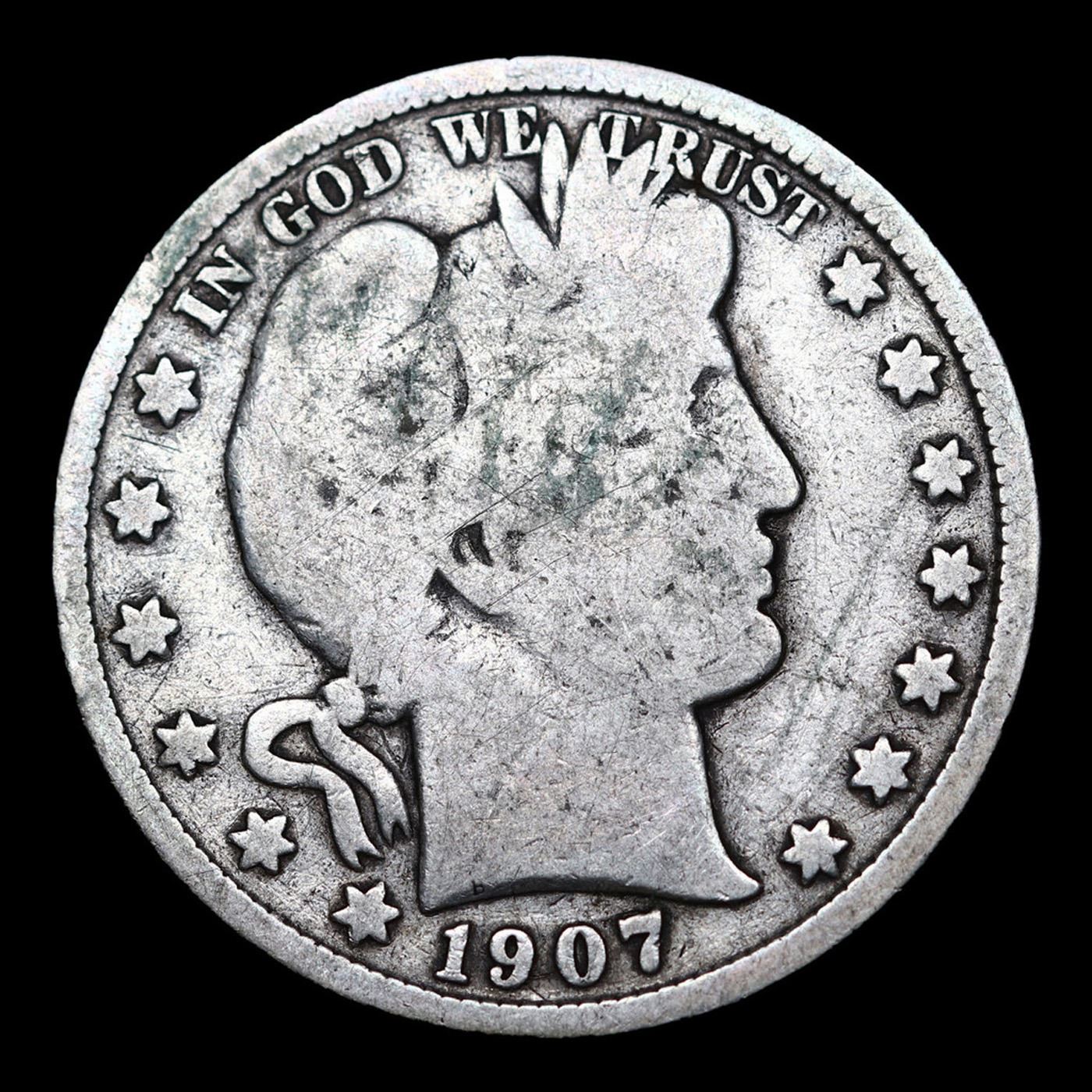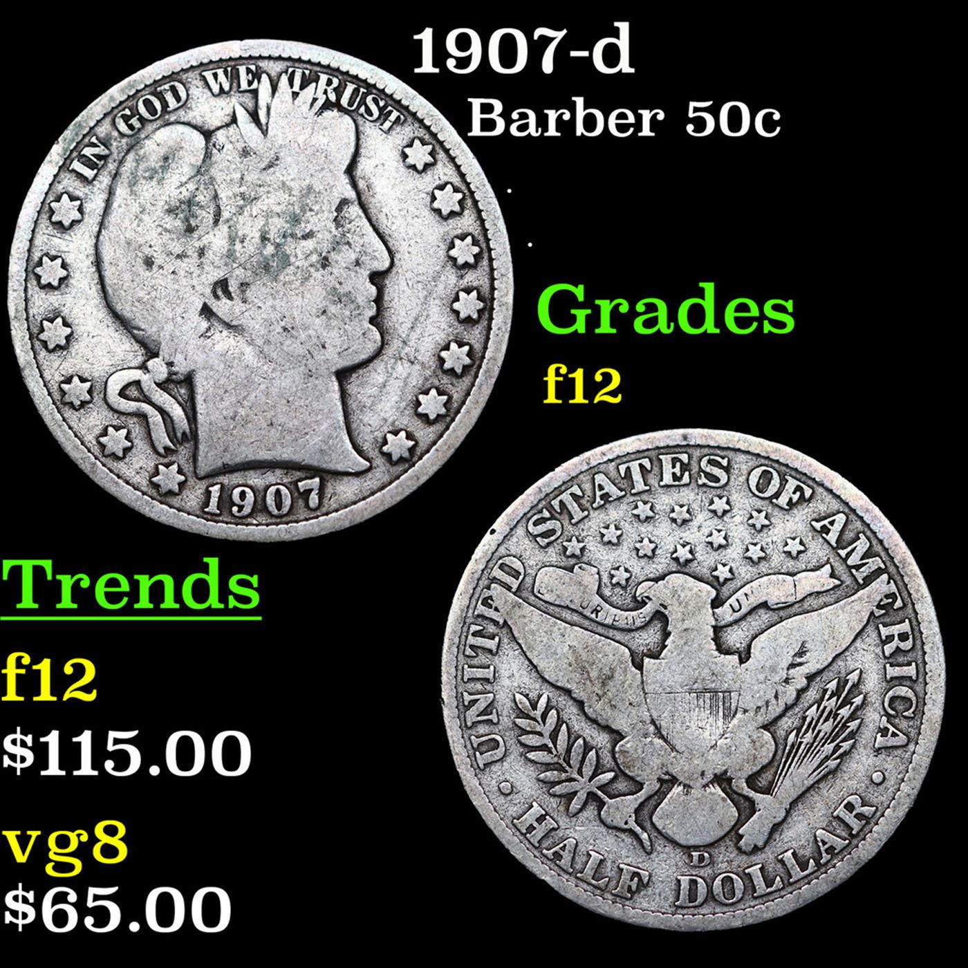 1907-d Barber Half Dollars 50c Grades f, fine.