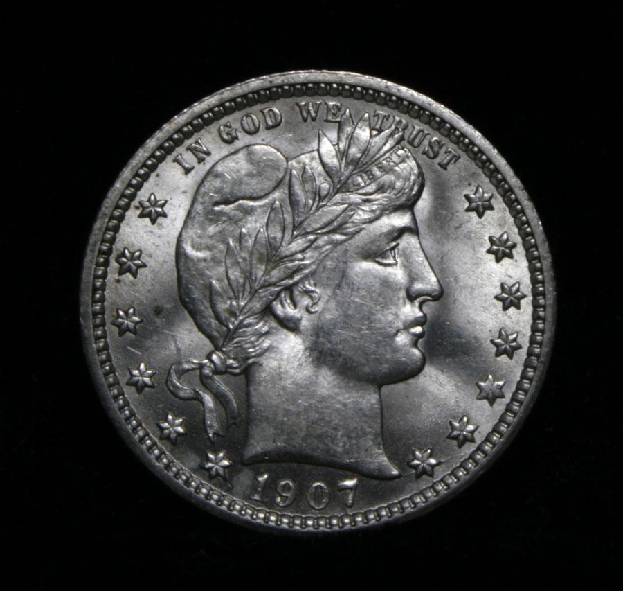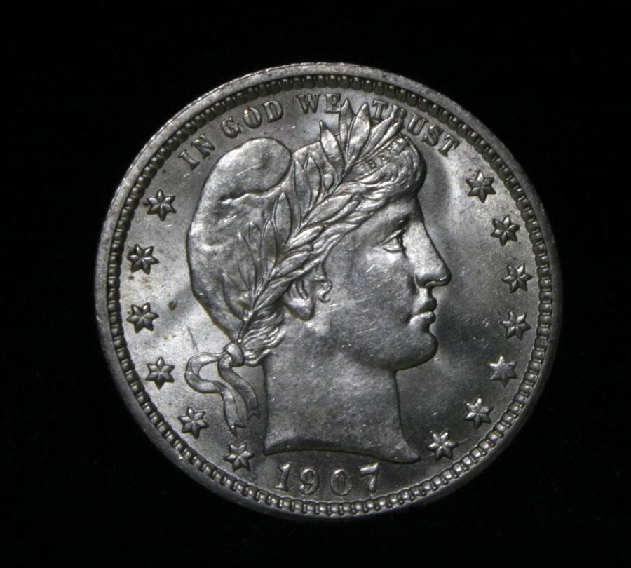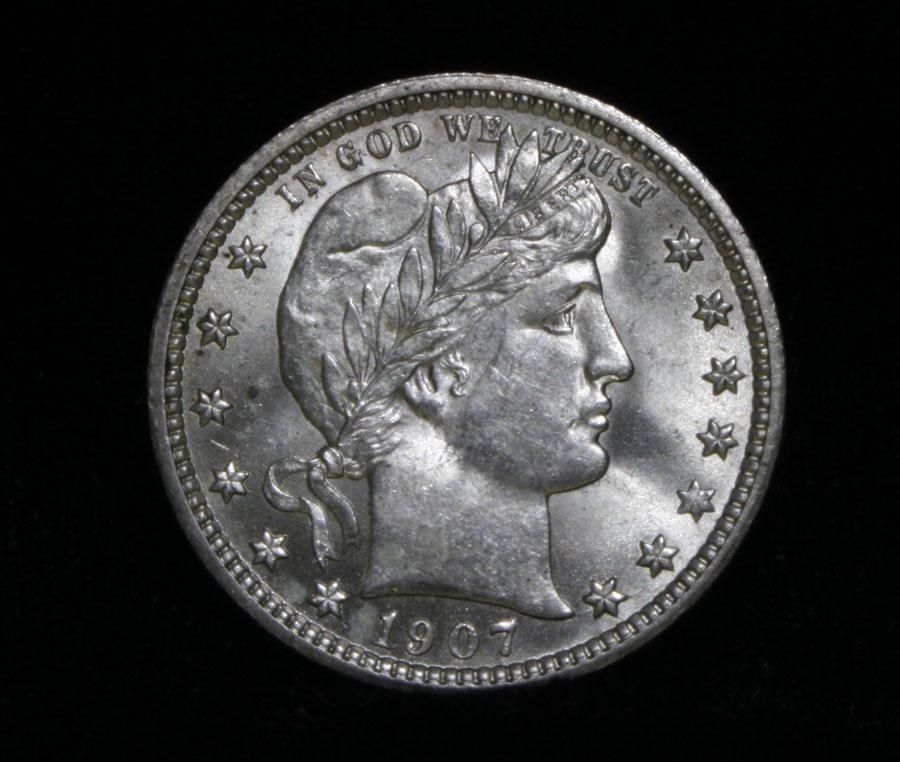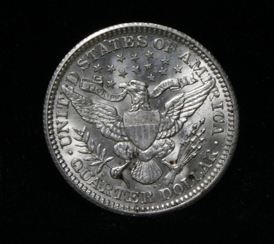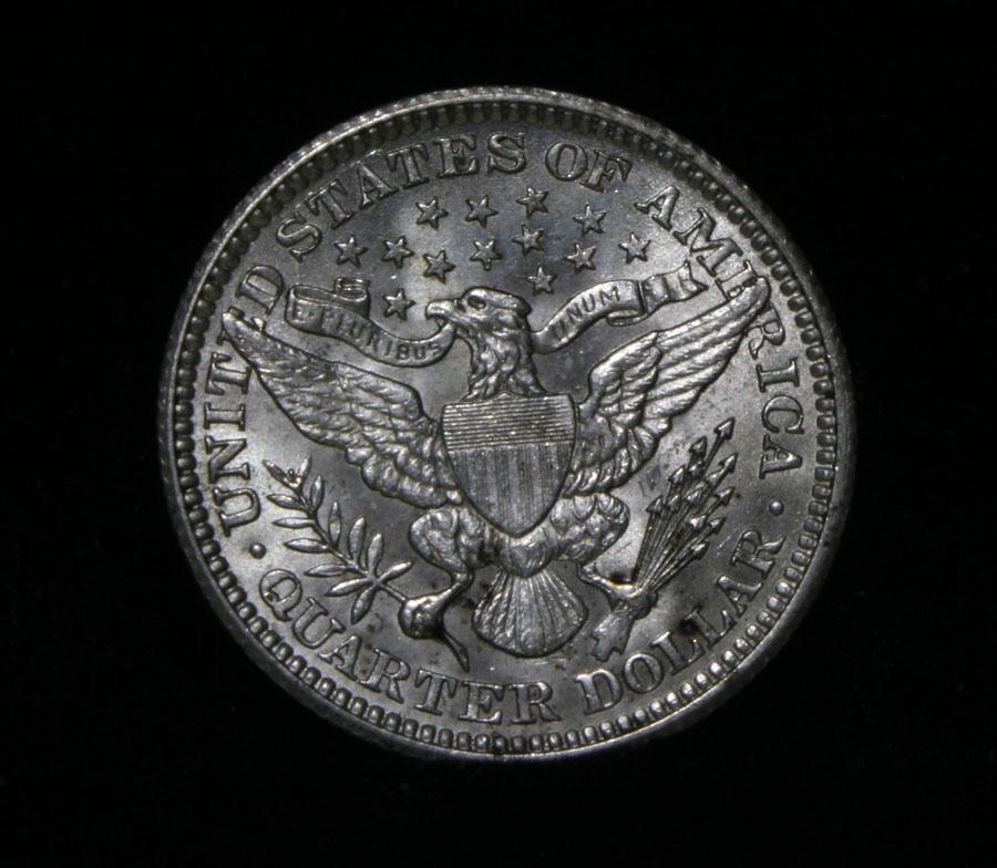 A stunning Gem Uncirculated Barber Quarter. Blast White, Great Eye Appeal, Great Luster. Strike typical of the issue. Coin World's Coin Values lists ms65 at $1250 and The Wholesale Greysheet lists ms65 at $875+ Estimated Value $1000.