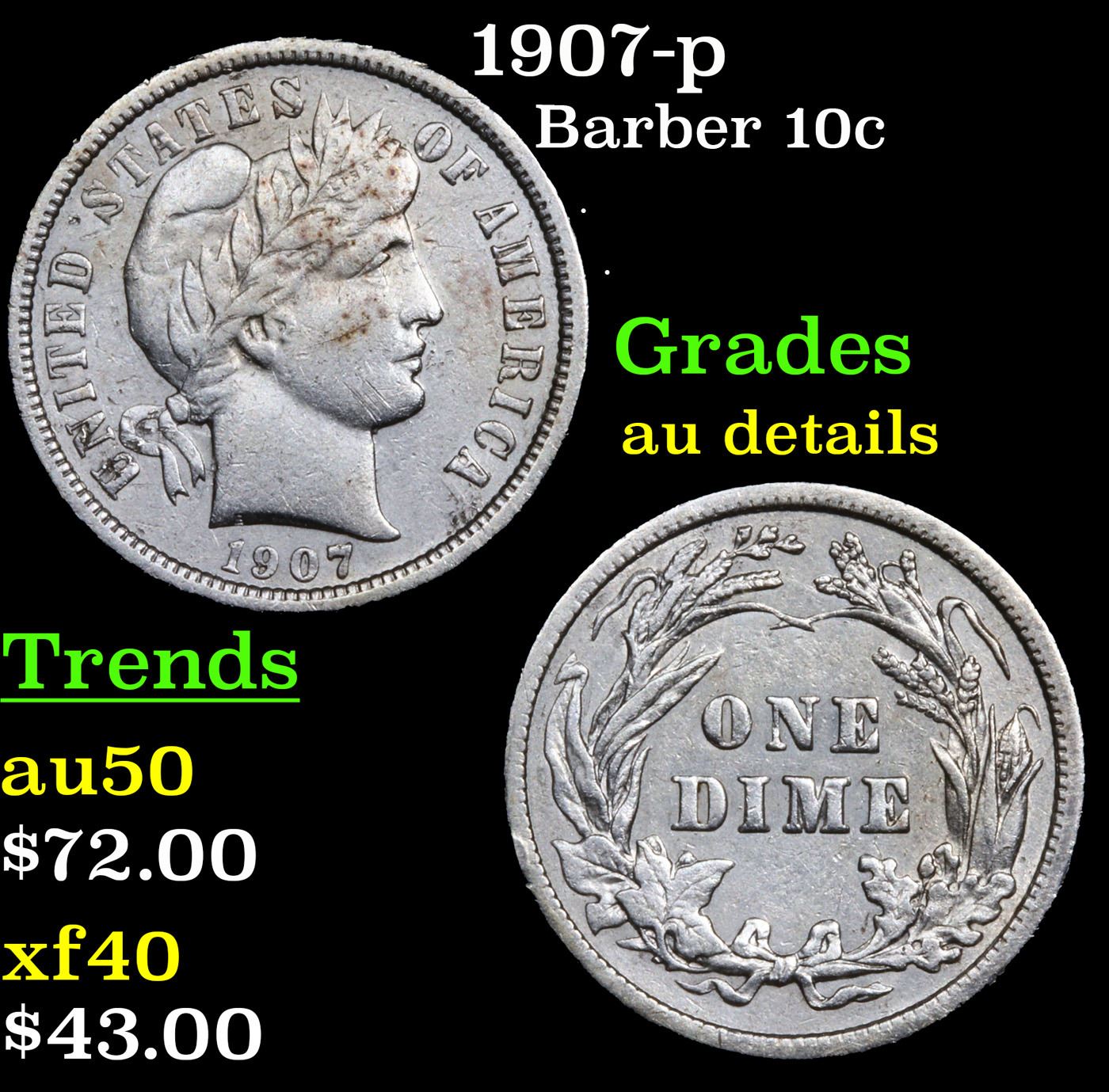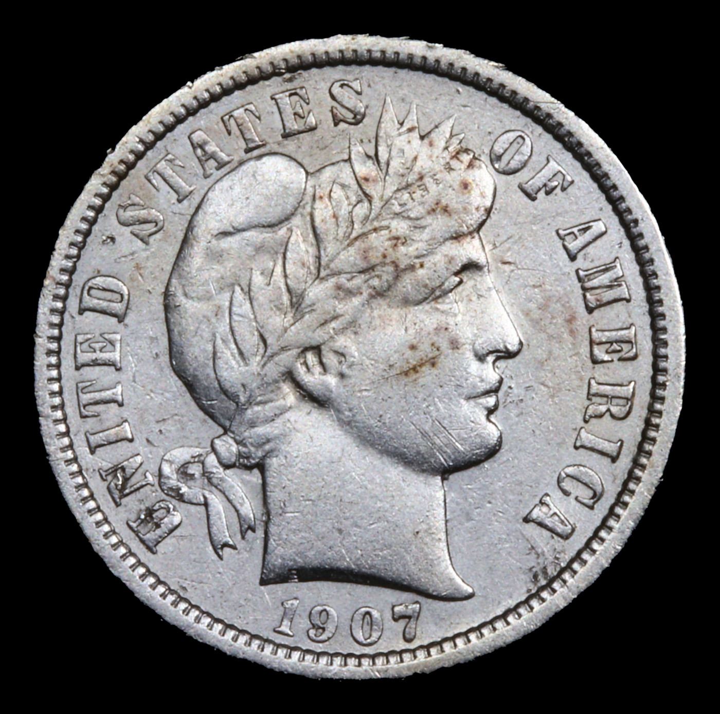 1907-p Barber Dime 10c Grades AU Details.