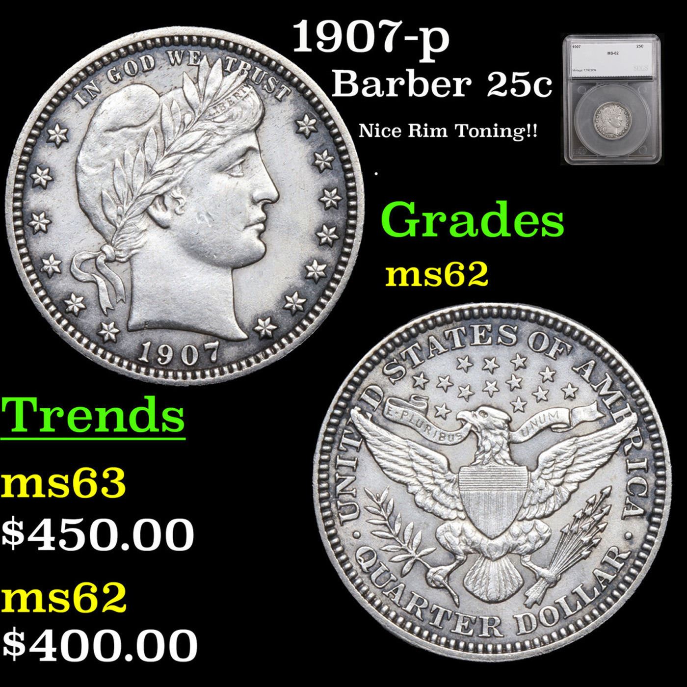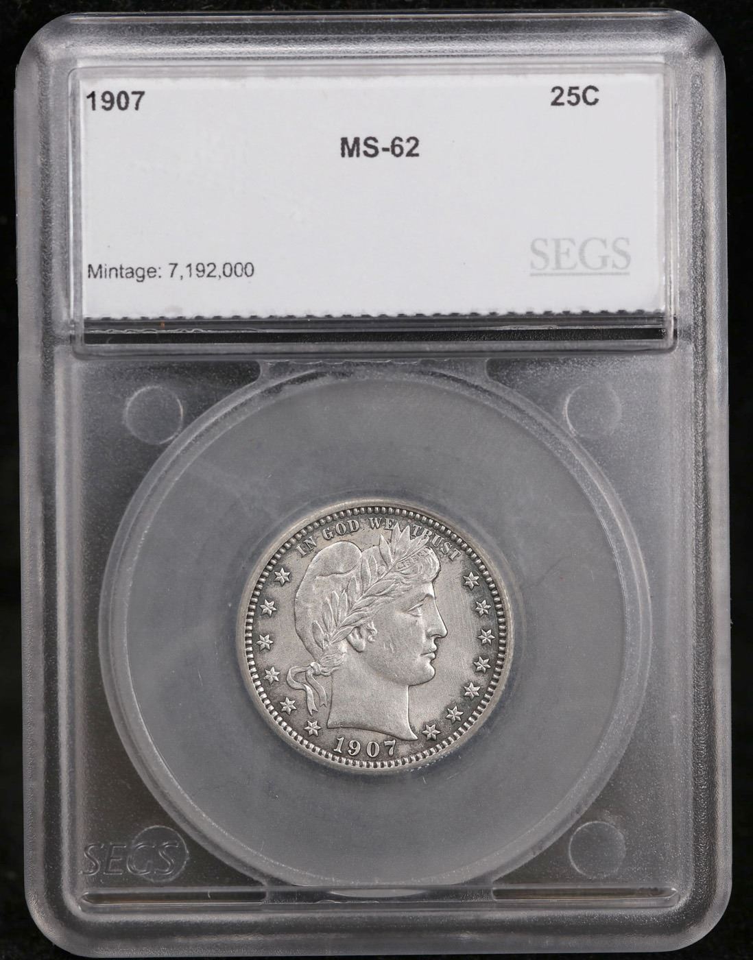 1907-p Barber Quarter 25c Graded ms62 By SEGS.