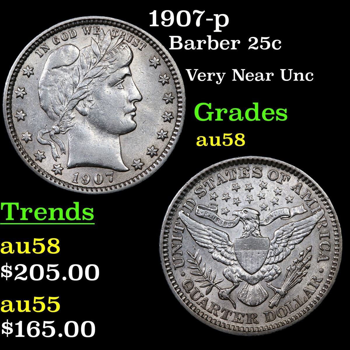 1907-p Barber Quarter 25c Grades Choice AU/BU Slider.