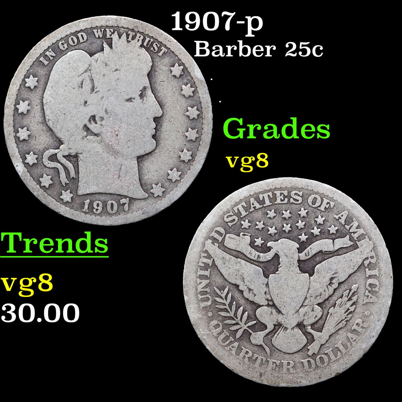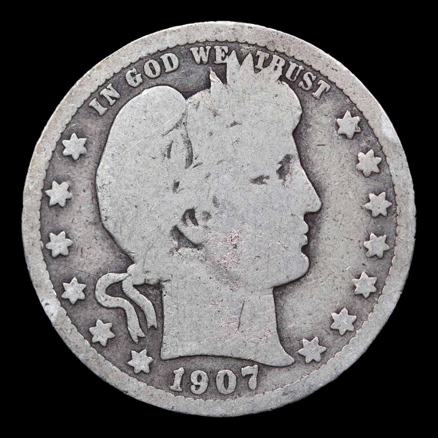 1907-p Barber Quarter 25c Grades vg, very good.