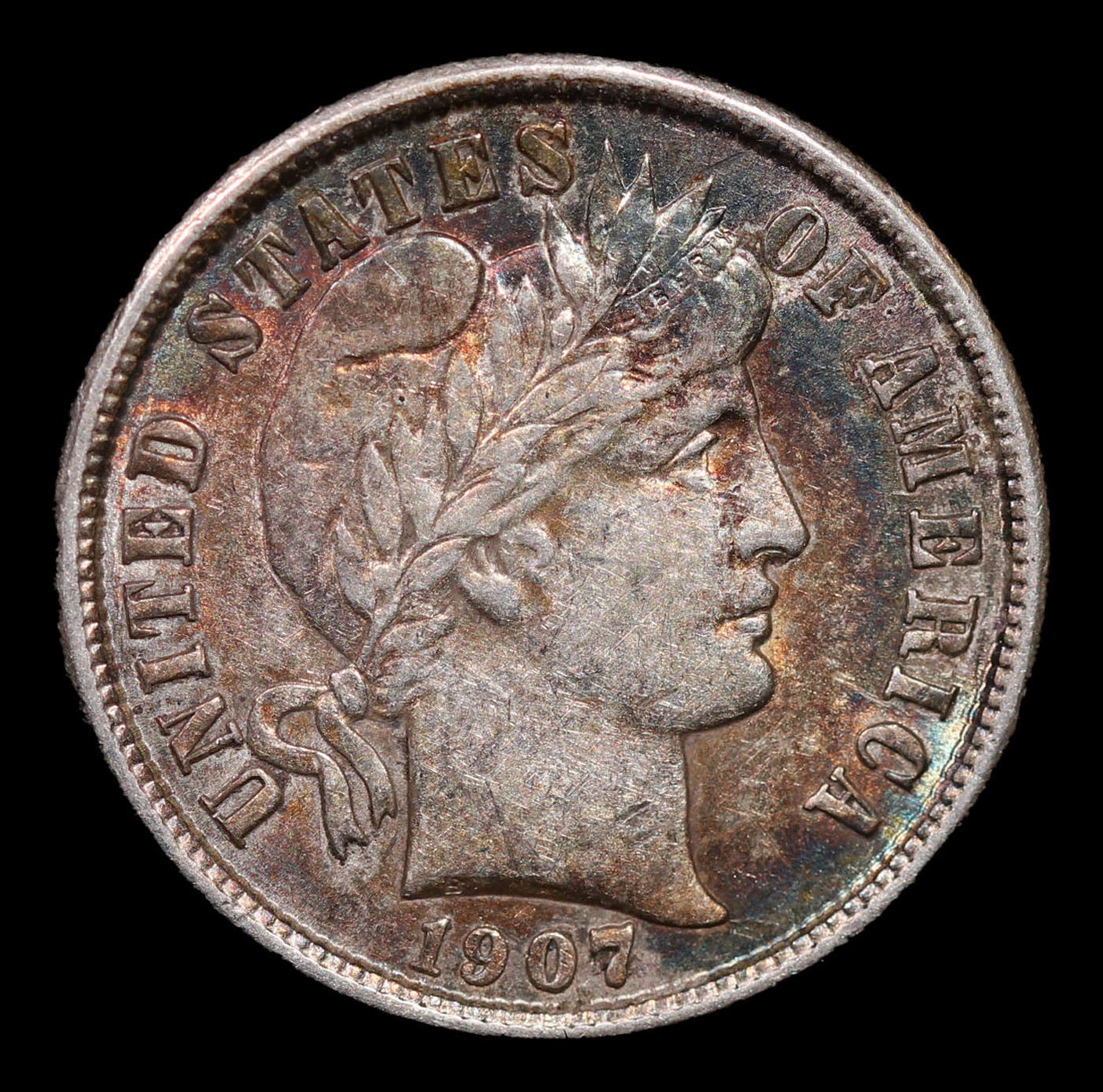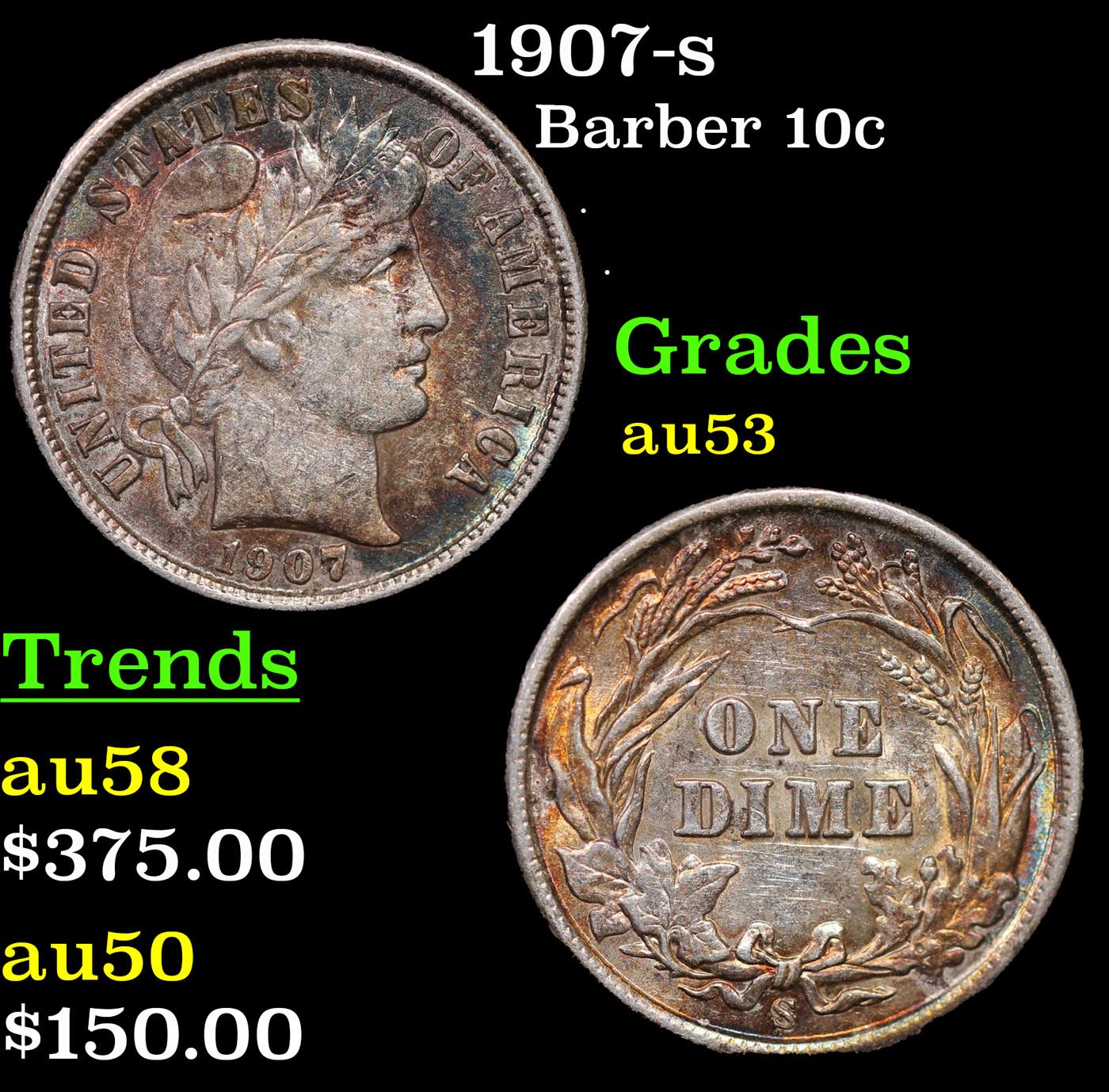 1907-s Barber Dime 10c Grades Select AU. A very scarce date.