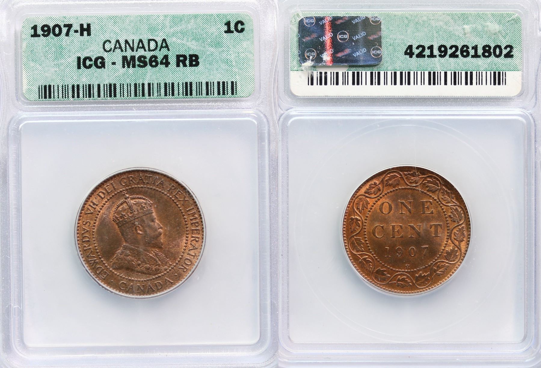 1907H 1¢ ICG Very Choice Mint State-64 RB, A nice example with lots of lustre. Better date.