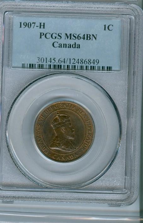 1907H 1¢ PCGS MS-64BN. A nice red/brown example with perfect fields. A very nice example
