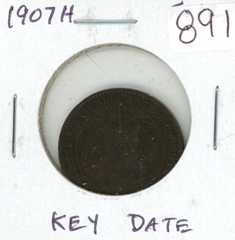 1907H Canadian Edward VII Large Cent. Heaton Mint. Key Date. F-12.