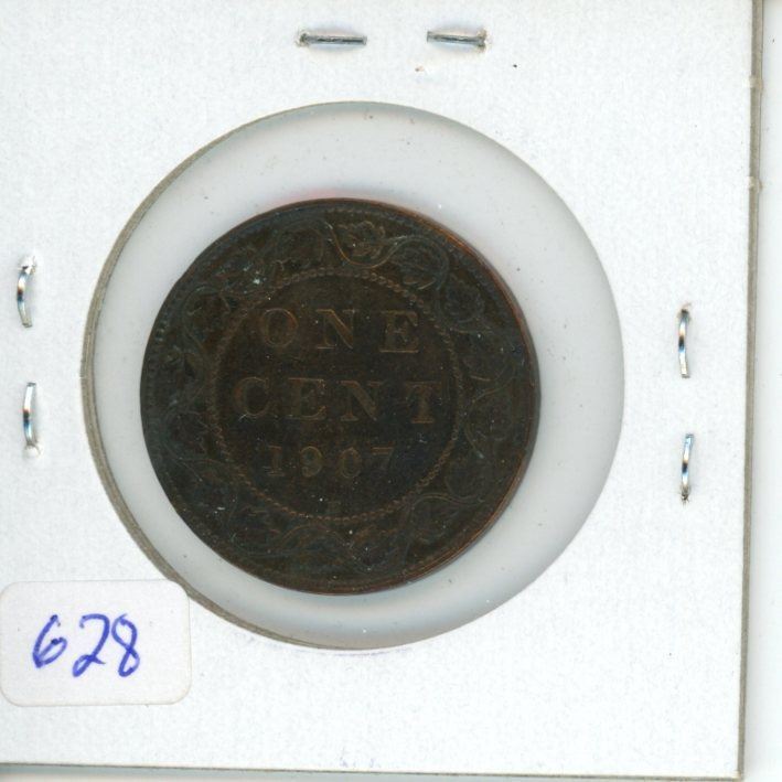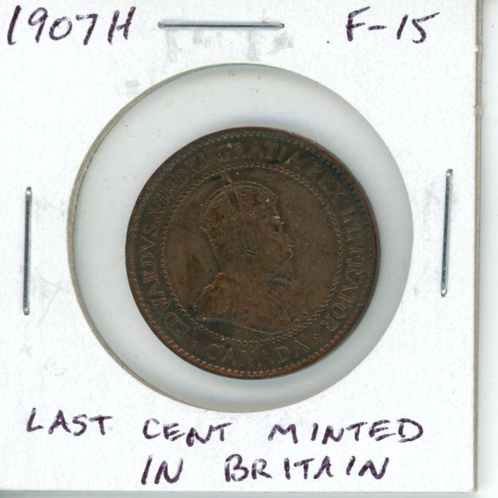 1907H Canadian Large Cent. Heaton Mint. The last cent minted in Britain. Key Date. F-15.