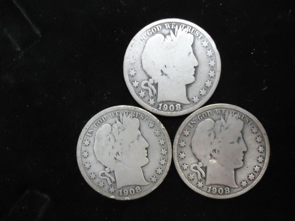 1908,08-D & 08-S BARBER HALF DOLLARS