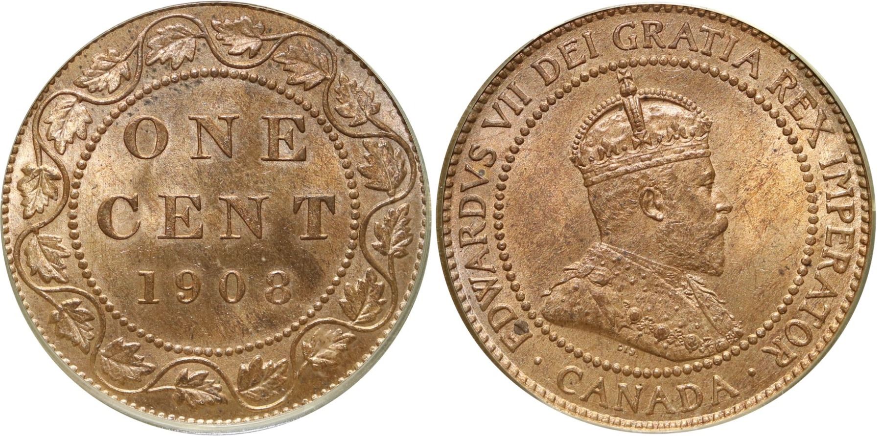 1908 1¢ CCCS/ICCS Choice Mint State-64RD.  Attractive 95% red example.