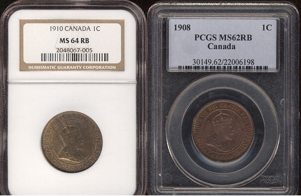 1908 1¢ PCGS MS62RB & 1910 1¢ NGC MS64RB. Lot of 2 coins