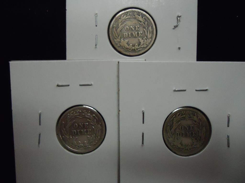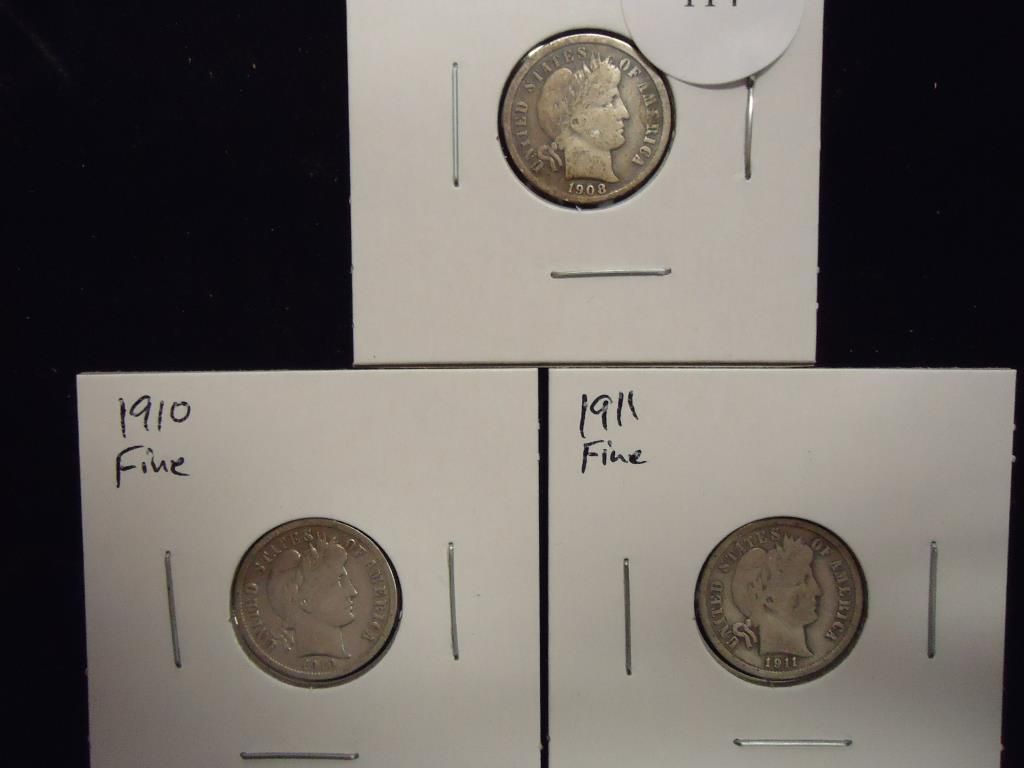 1908, 10 & 11 BARBER DIMES ALL FINE