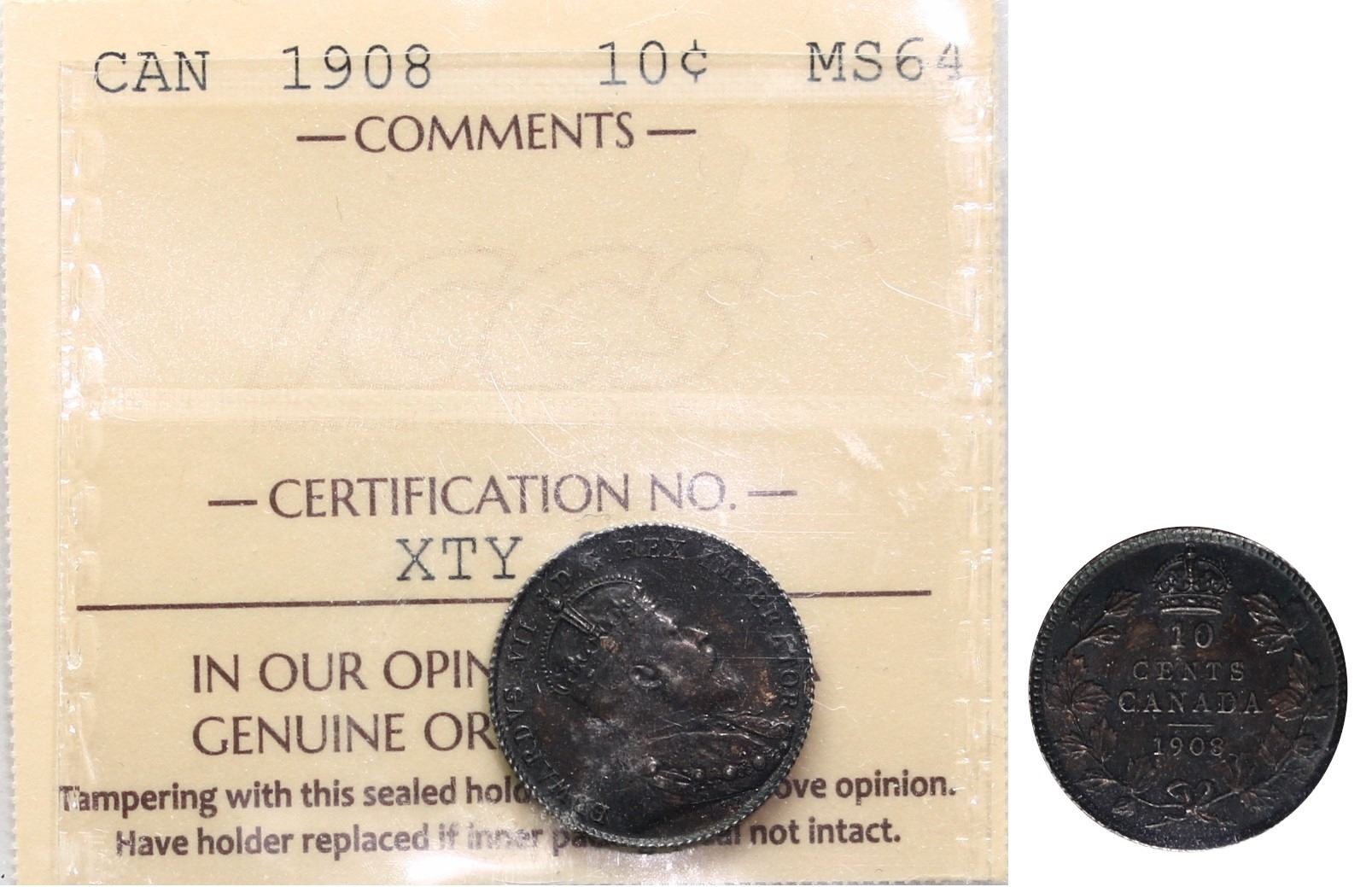 This is an Internet, Live Internet, email, phone and mail auction sale conducted. Information provided by The Canadian Numismatic Company on our web site and in this catalog is strictly AS IS and/or strictly an opinion. No warranty given. Bids are per lot. No lots will be broken. Auction sales are not approval sales. All lots shall be sold to the highest bidder as determined by the auctioneer. If any dispute arises during the sale, the auctioneer has the right to reopen the lot and put it up for sale again. The auctioneer’s decision will be final. In the case of identical (tied) bids during our Live Auctions, the earliest received bid shall take priority. In the case of a tie bid during our Sales, between a mail/fax bid and an Internet bid, the Internet bid will take precedence and obtain the lot. PLEASE CONTACT US IF YOU REQUIRE FURTHER EXPLANATION.