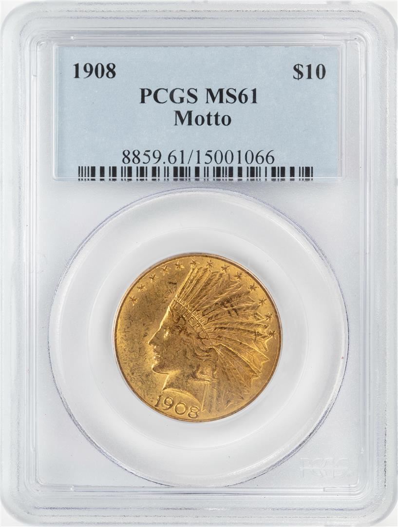 One 1908 $10 Indian Head Eagle Gold Coin PCGS MS61. PCGS Graded.