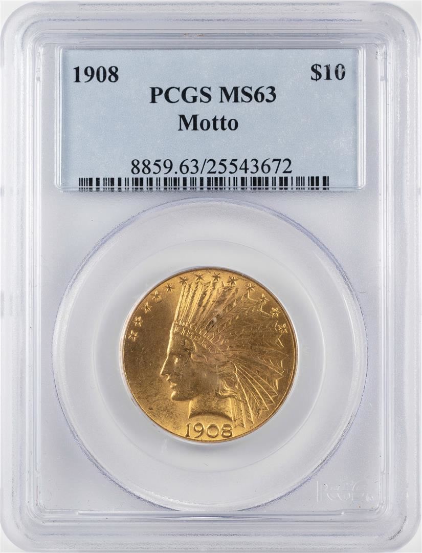 One 1908 $10 Indian Head Eagle Gold Coin PCGS MS63. PCGS Graded.