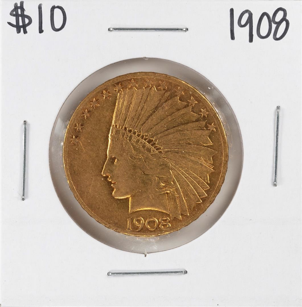 One 1908 $10 Indian Head Eagle Gold Coin.