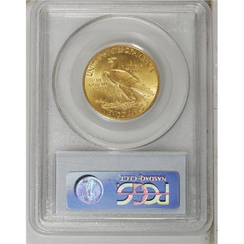 <B>1908<$10> Motto MS62 PCGS.</B></I> Nicely struck with pleasing, if subtle, luster. The yellow-gold surfaces have touches of green and various small marks that limit the grade.