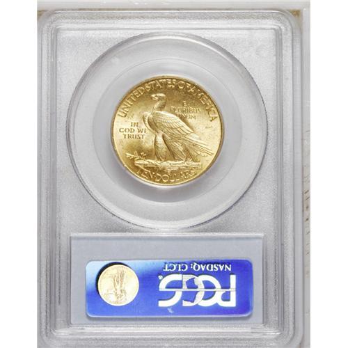 <B>1908<$10> Motto MS62 PCGS.</B></I> The exposed Indian's cheek and the left obverse field show a few moderate abrasions, but the brilliant luster over the golden-yellow surfaces partially compensates. The first year of the With Motto Indian eagles.