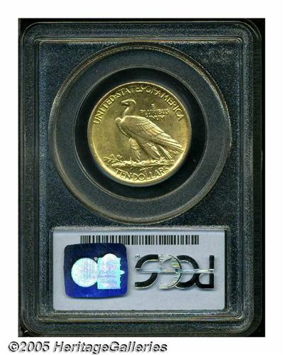 <B>1908<$10> No Motto MS62 PCGS.</B></I> A lustrous Mint State example with fully brilliant yellow surfaces. Highly attractive.