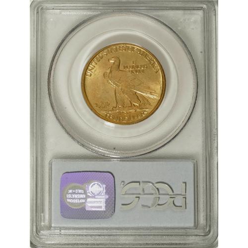 <B>1908 $10 No Motto MS62 PCGS.</B></I> Boldly struck with thick luster and rich coloration. A few noticeable scuff marks on the reverse limit the grade. President Roosevelt's attempt to keep the motto IN GOD WE TRUST off of this new gold eagle design was unsuccessful, and the motto was added after just 33,500 pieces were produced by the Philadelphia Mint.<BR><BR><b>Shipping:</b> Coins & Currency (<a target="_blank" href="http://www.heritageauctions.com/common/shipping.php">view shipping information</a>)
