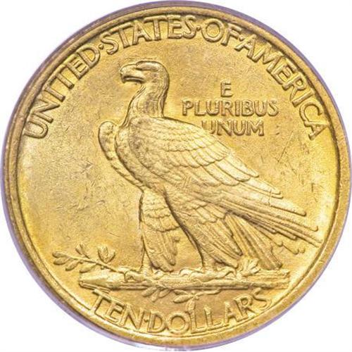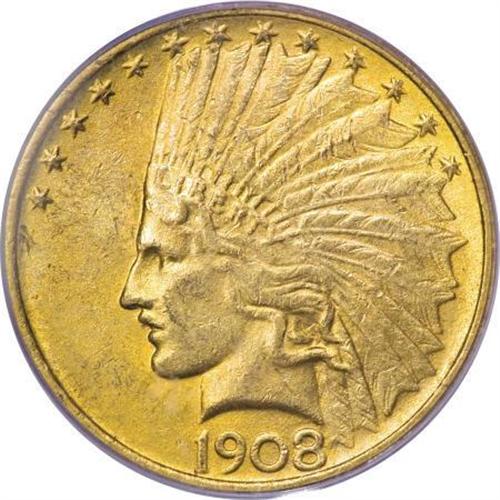 <B>1908 $10 No Motto MS62 PCGS.</B></I> Lightly abraded surfaces have a blend of lemon-yellow and lighter yellow-gold color on both sides, with frosty mint luster and full cartwheel brilliance. This is a scarce variety, representing only about 10% of all 1908 eagles coined, the balance being the new With Motto type.<BR><BR><B>Coin Engraver:</B> Augustus Saint-Gaudens<BR><BR><b>Shipping:</b> Coins & Currency (<a target="_blank" href="http://www.heritageauctions.com/common/shipping.php">view shipping information</a>)