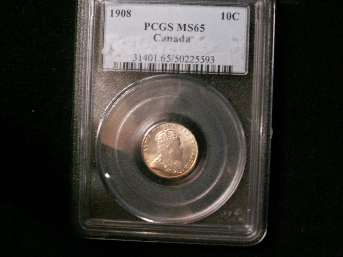 1908 10¢ PCGS MS65. Well struck and attractive pc.