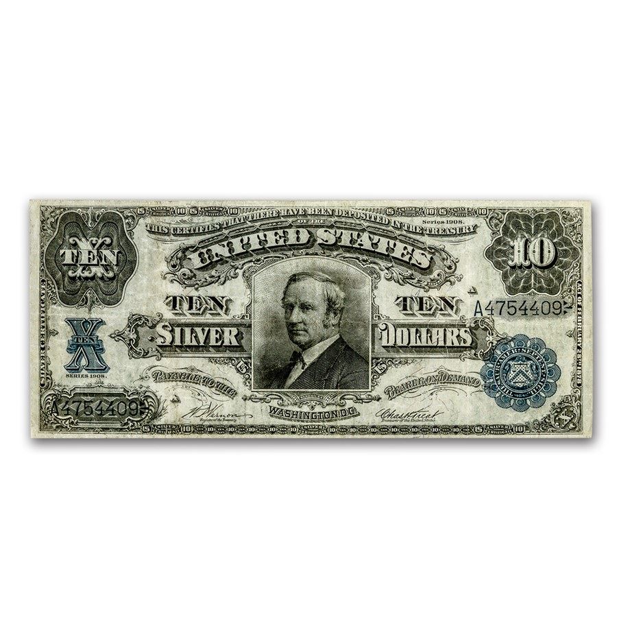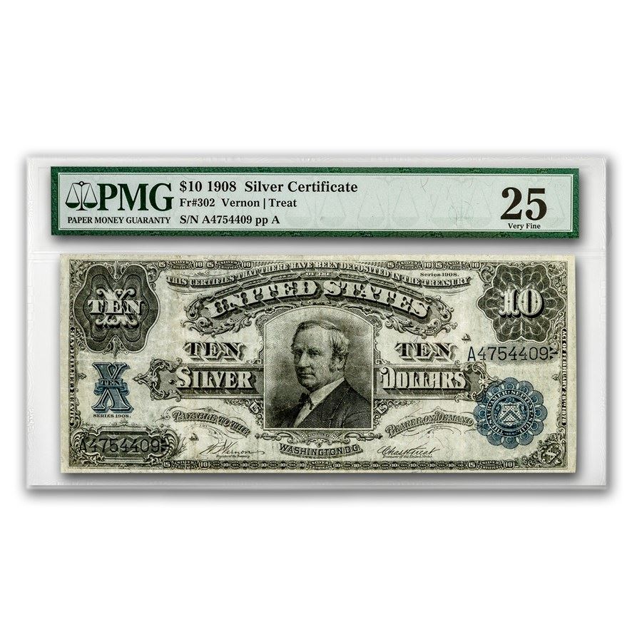 1908 $10 Silver Certificate Hendricks Tombstone VF-25 PMG
