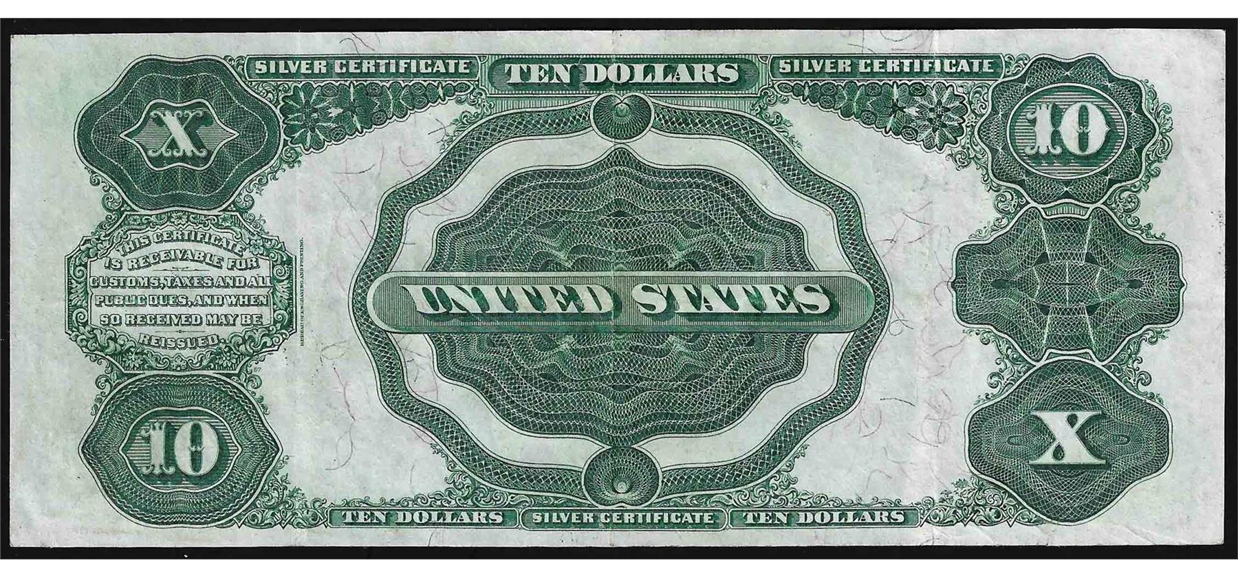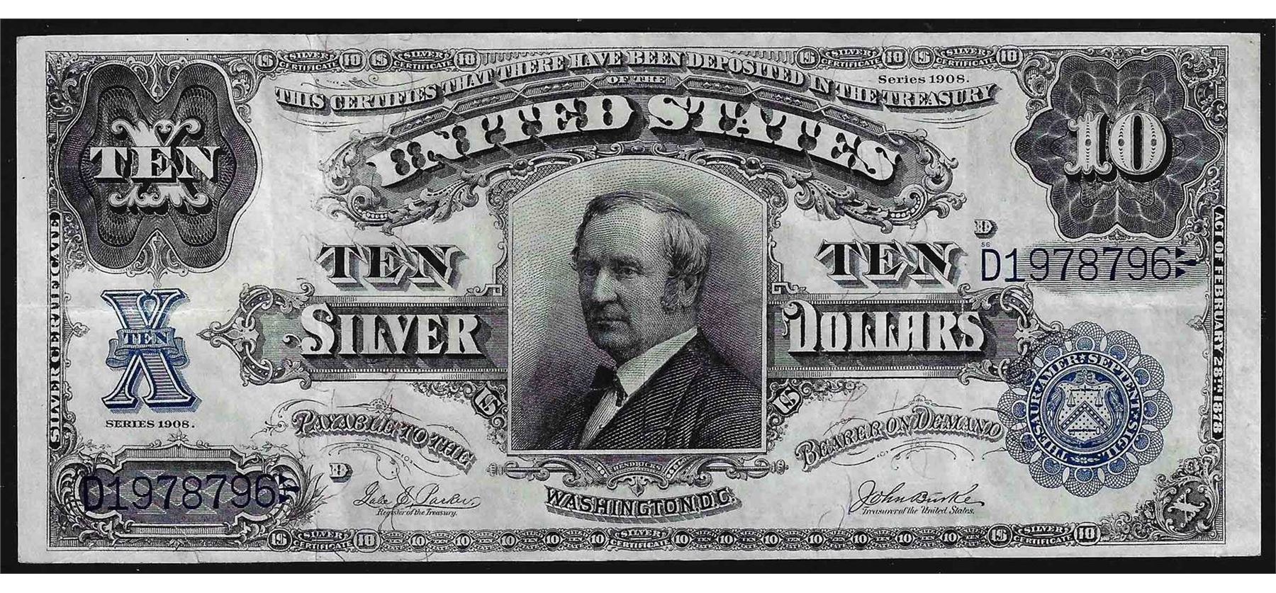 One 1908 $10 Silver Certificate Tombstone Note.