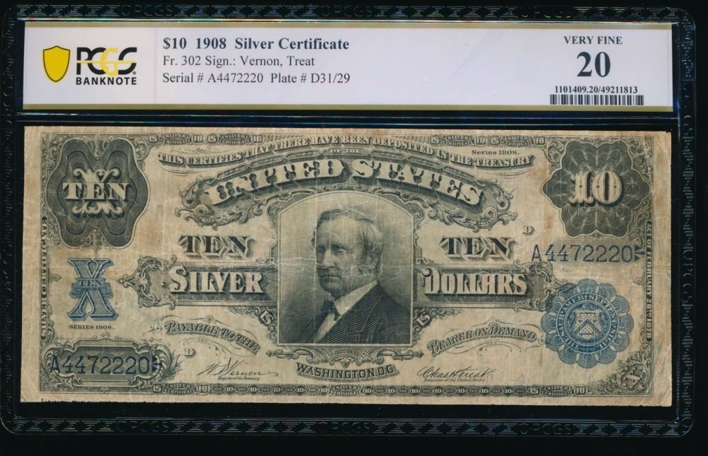 One 1908 $10 Tombstone Silver Certificate PCGS 20.