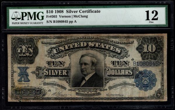 One 1908 $10 Tombstone Silver Certificate PMG 12.