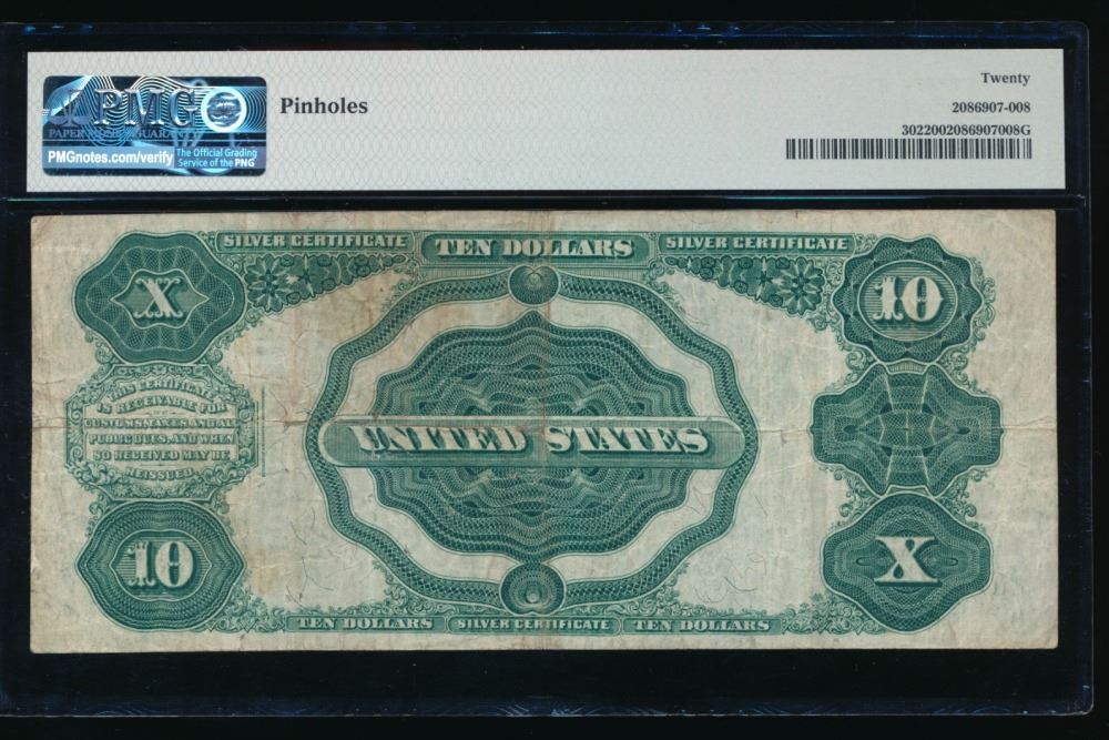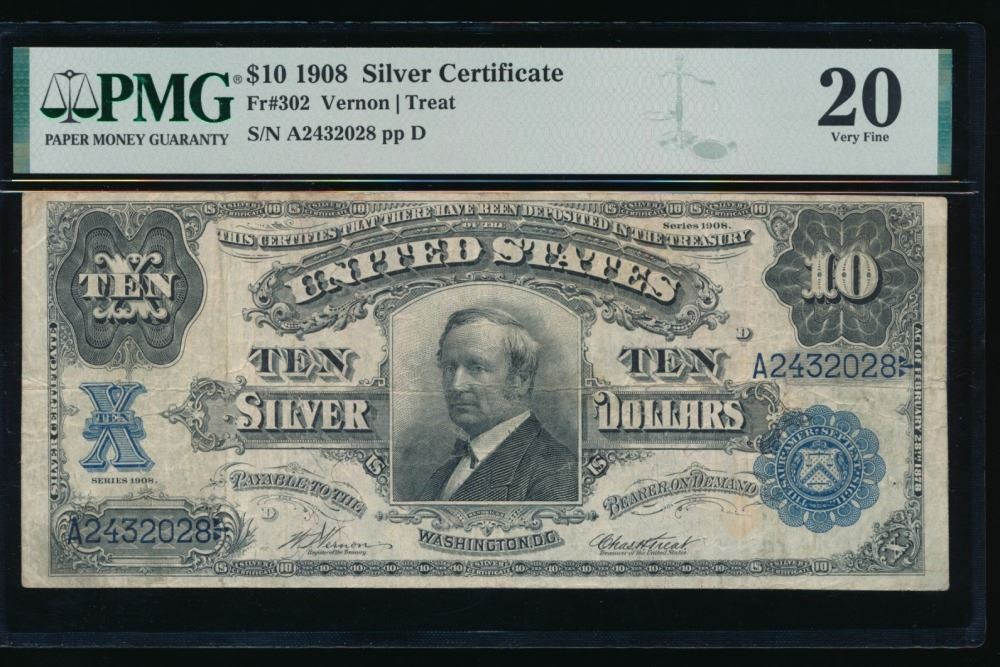 One 1908 $10 Tombstone Silver Certificate PMG 20.