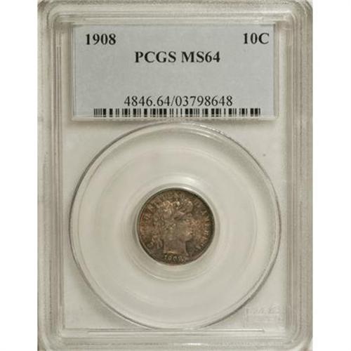 1908 10C MS64 PCGS. PCGS Population (79/50). NGC Censu